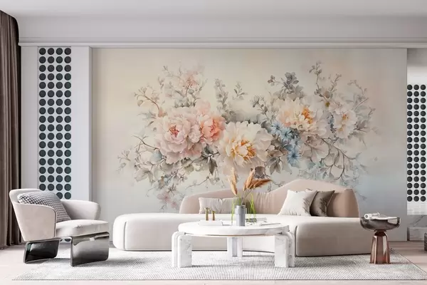 Zidne murale delikatno cvijeće u stilu akvarela u pastelnim nijansama ružičaste, bež i plave br. w03724