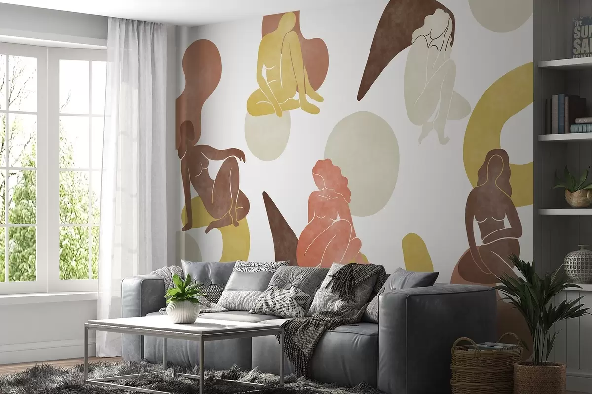 Zidne murale Geometrijske apstrakcije sa ženskim siluetama, boho stil, smeđa, bež, žuta br. w03753v2