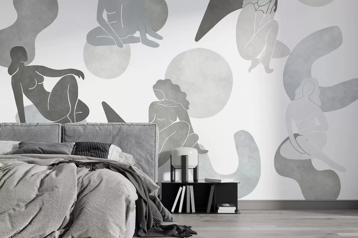 Zidne murale Geometrijske apstrakcije sa ženskim siluetama, boho stil, sive boje br. w03753v5