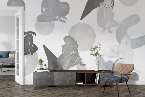 Zidne murale Geometrijske apstrakcije sa ženskim siluetama, boho stil, sive boje br. w03753v5