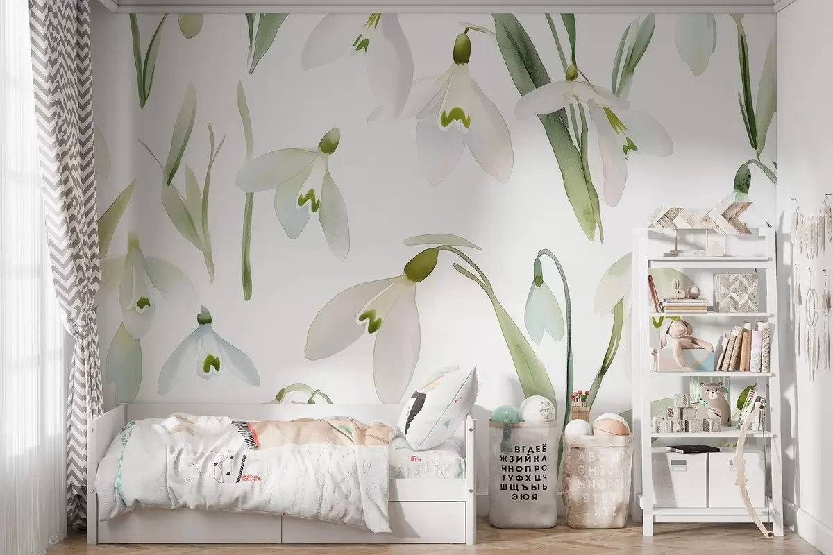 Zidne murale Snjegulje cvijeće u stilu akvarela, prirodne boje br. w03754