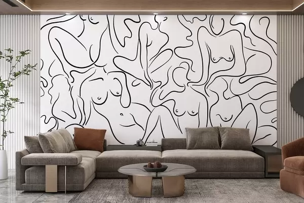Zidne murale Crtanje silueta ženskih tijela, apstrakcija, crna boja br. w03755