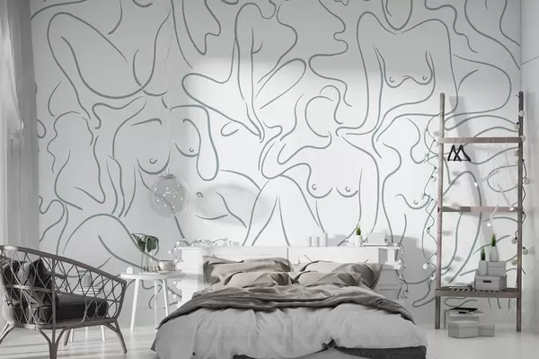 Zidne murale Linijski crtež anatomskih silueta, apstrakcija, plava boja br. w03755v1