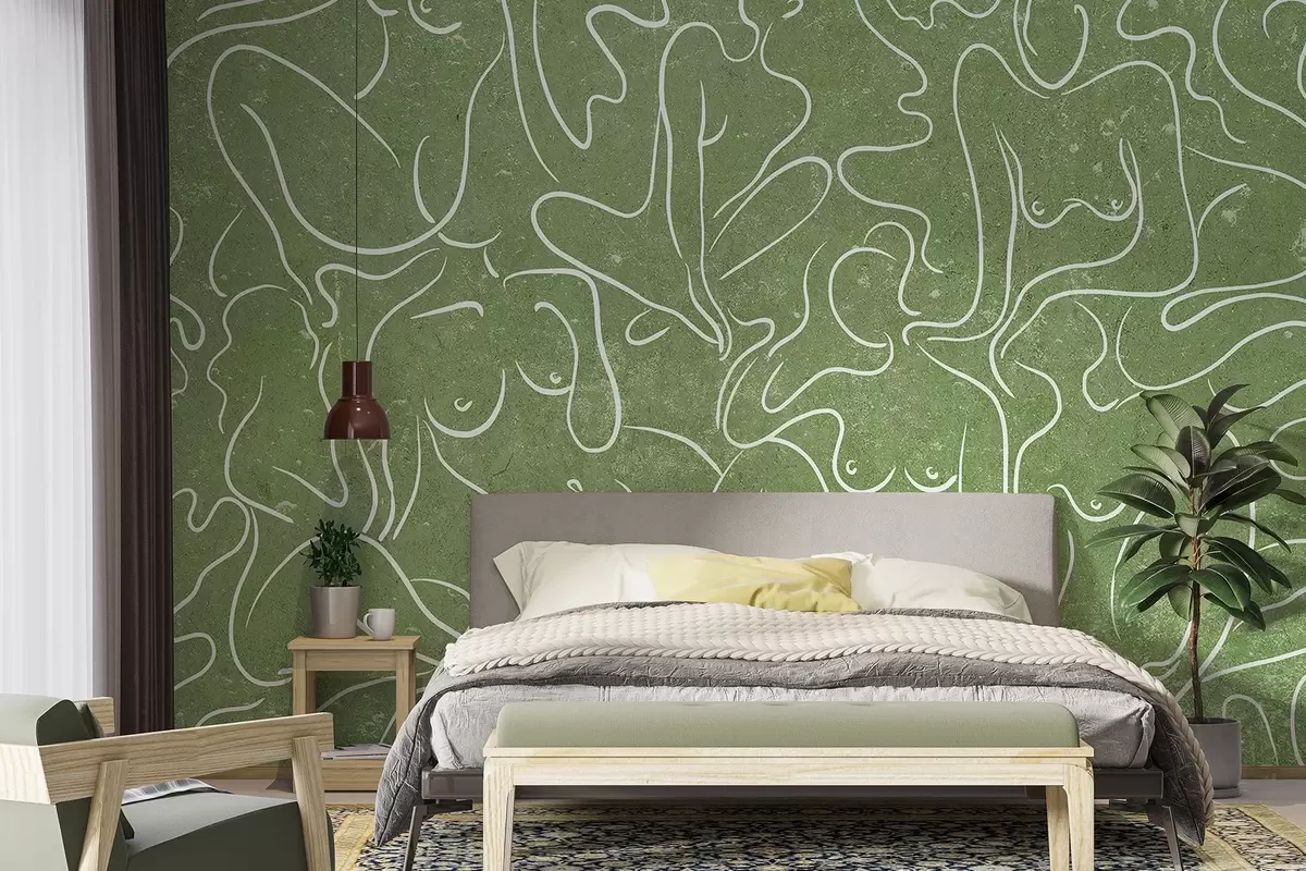 Zidne murale Crtanje anatomskih silueta, apstrakcija, zelena pozadina br. w03756v2