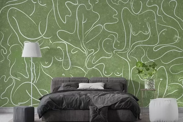 Zidne murale Crtanje anatomskih silueta, apstrakcija, zelena pozadina br. w03756v2
