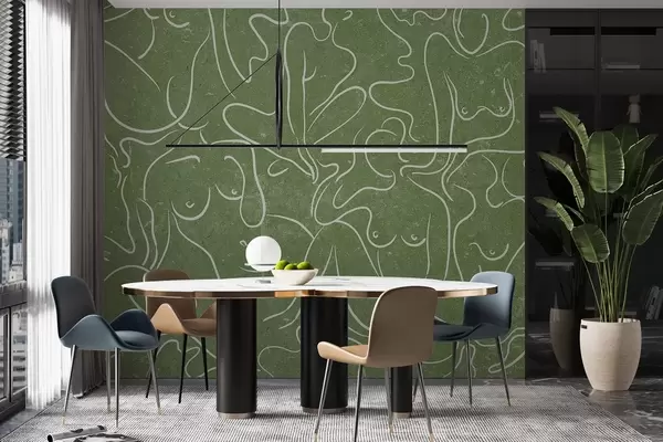 Zidne murale Crtanje anatomskih silueta, apstrakcija, zelena pozadina br. w03756v2