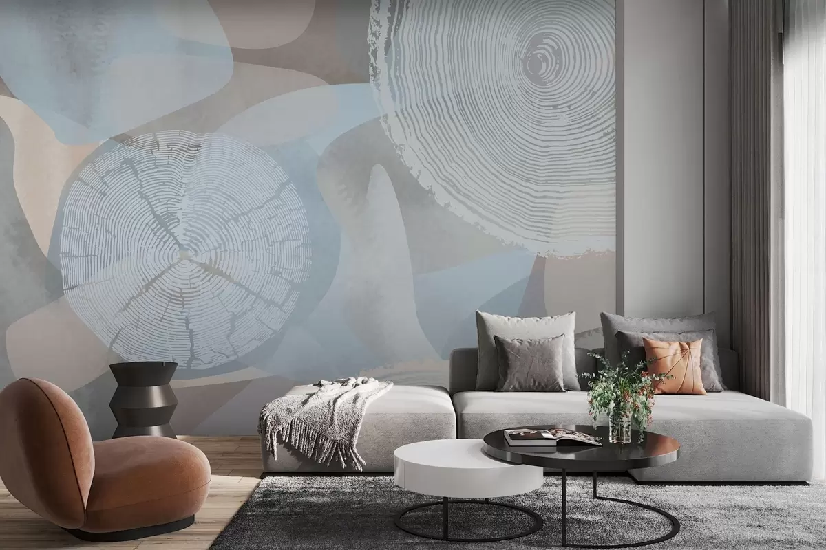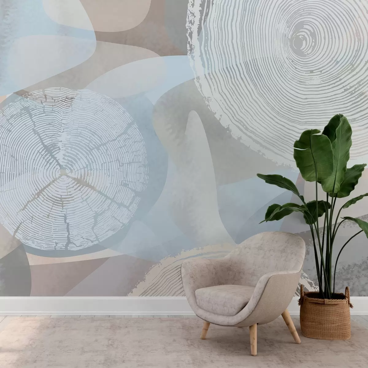 Zidne murale moderni apstraktni oblici i godišnji prstenovi drveća br. w03769