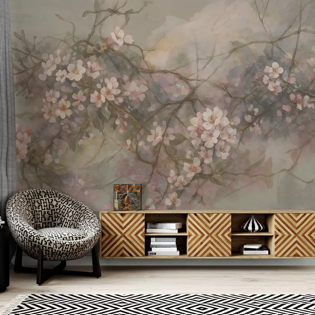 Zidne murale Akvarel apstraktne grane s cvijećem br. w03815