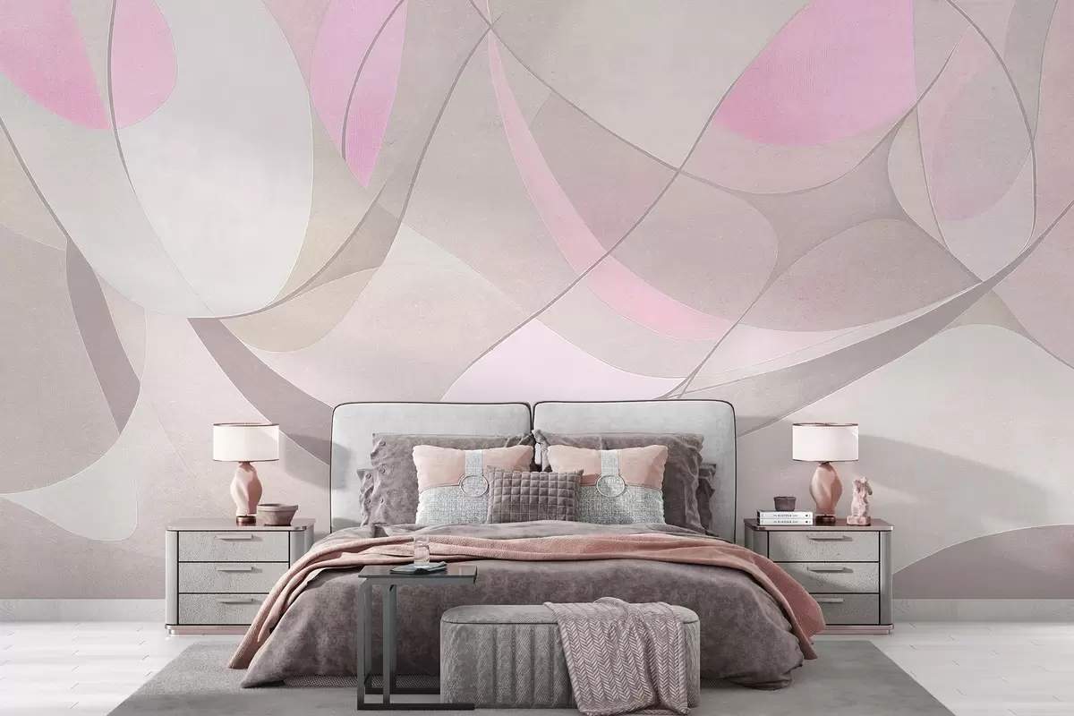 zidne murale Geometrijska apstrakcija, prigušene ružičaste i bež boje w03878v1