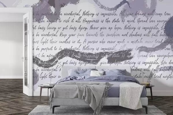 Zidne murale Dizajn s inspirativnim citatima, apstrakcijom, ljubičastim bojama br. w03909v2