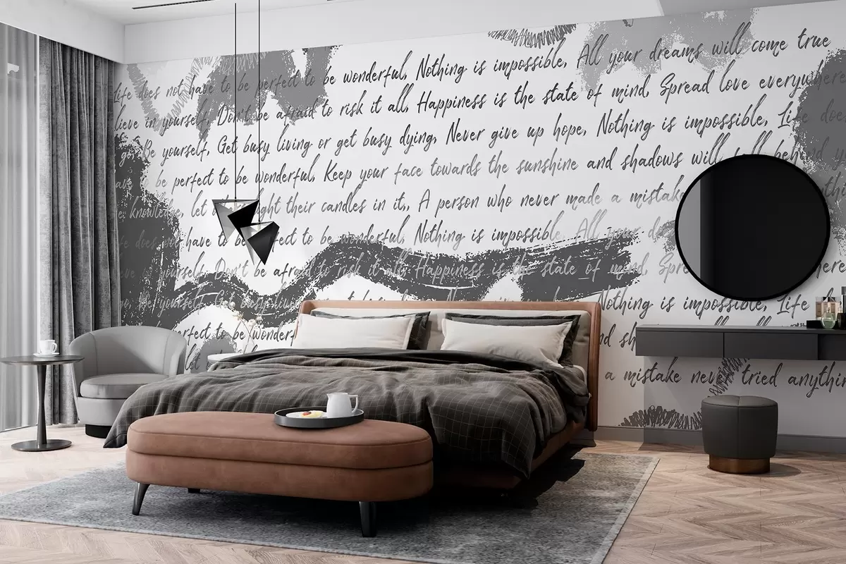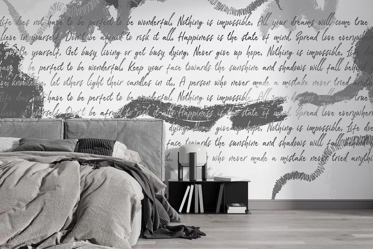 Zidne murale Dizajn s inspirativnim citatima, apstrakcijom, sivim bojama br. w03909v4