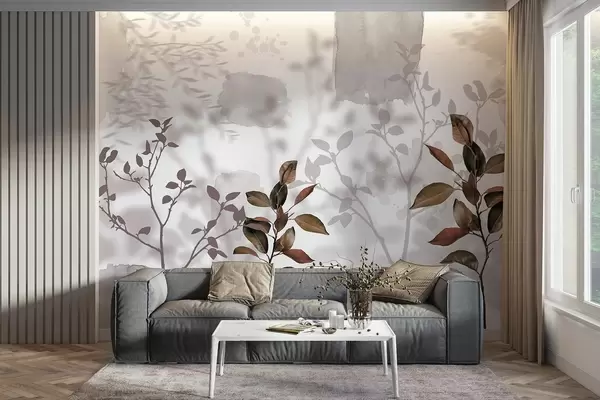 Zidne murale Lišće stabla limuna, sjene grana drveća, priroda, akvarel br. w03910