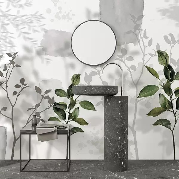 Zidne murale Lišće stabla limuna, sjene grana drveća, priroda, akvarel, zelena br. w03910v1