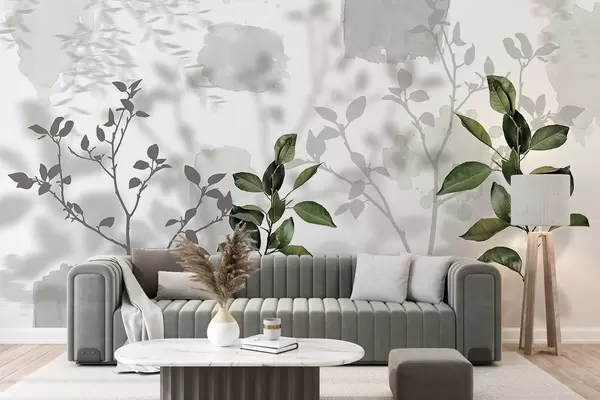 Zidne murale Lišće stabla limuna, sjene grana drveća, priroda, akvarel, zelena br. w03910v1