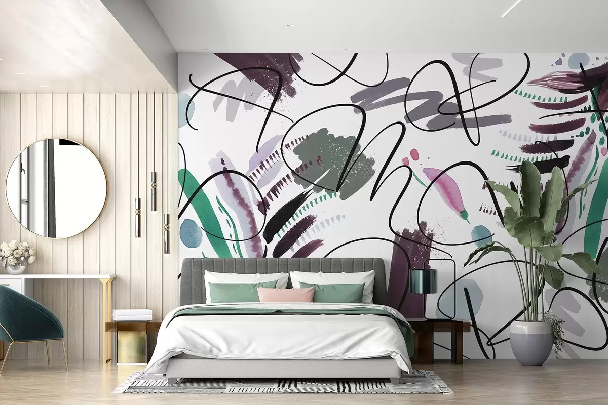 Zidne murale Slova tušem, kaligrafija, potezi kistom, pastelne boje, apstrakcija br. w03912v1