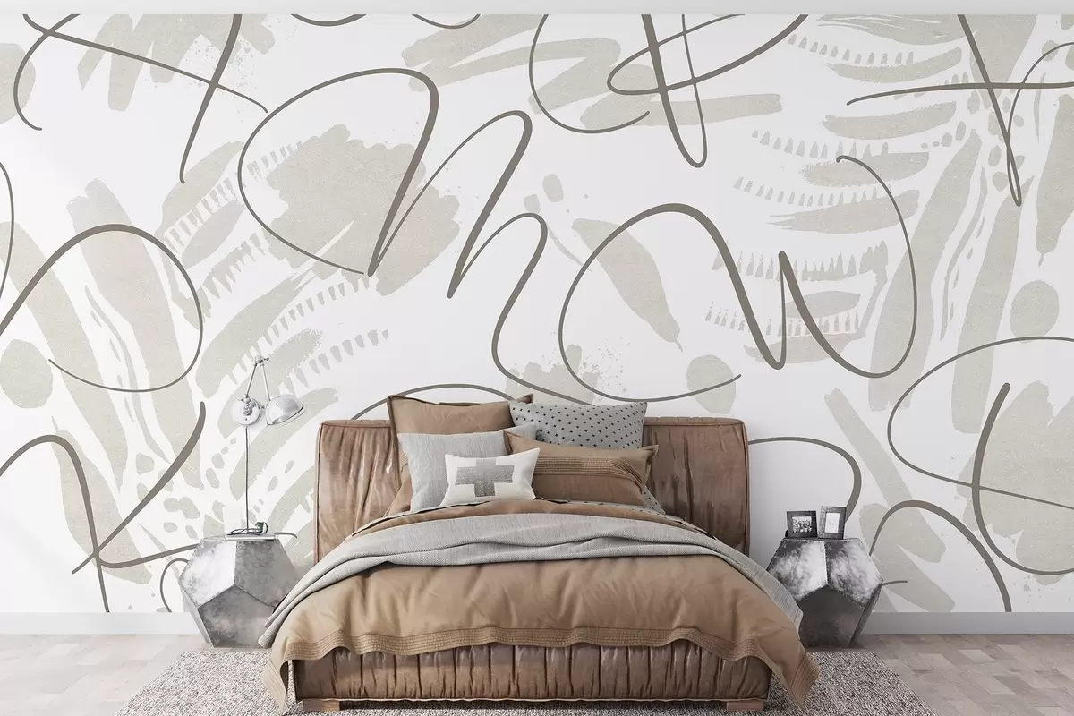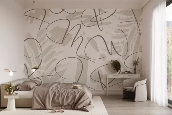 Zidne murale Kaligrafska apstrakcija sa slovima, potezima kista, bež boje br. w03913