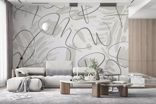 Zidne murale Kaligrafska apstrakcija sa slovima, potezima kista, bež boje br. w03913