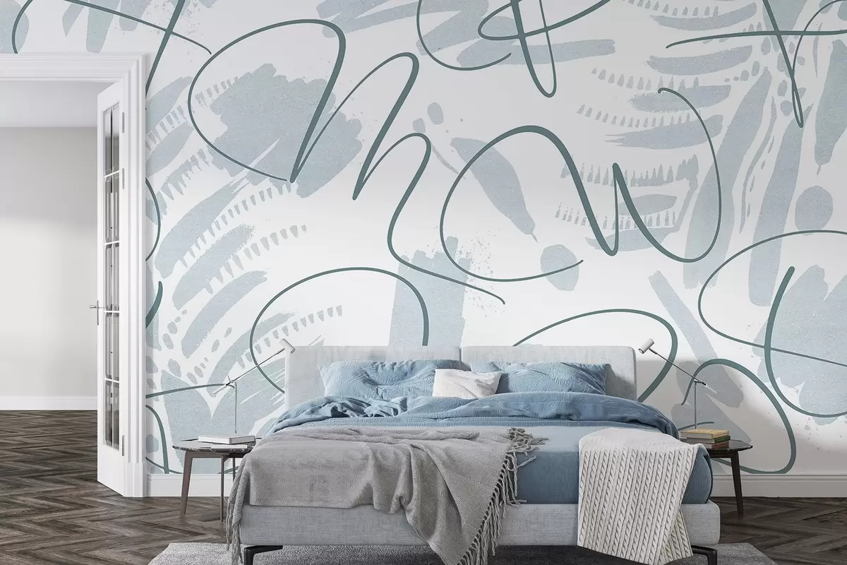 Zidne murale Kaligrafska apstrakcija sa slovima, potezi kistom, plava boja br. w03913v1