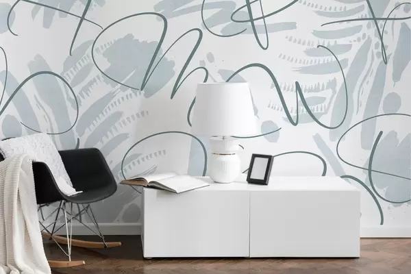 Zidne murale Kaligrafska apstrakcija sa slovima, potezi kistom, plava boja br. w03913v1
