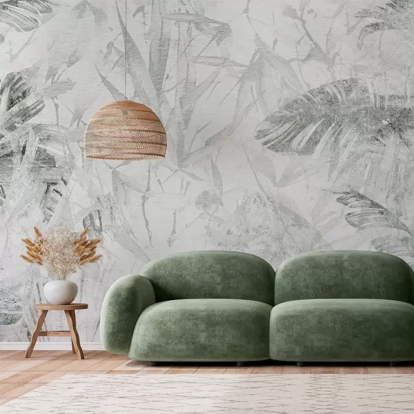 Zidne murale Cvjetna apstrakcija u grunge stilu s imitacijom abrazije, nijanse zelene br. w03926v2