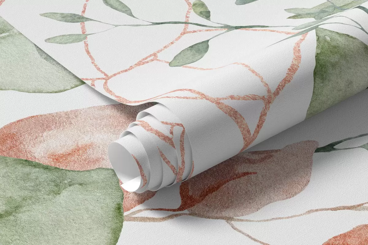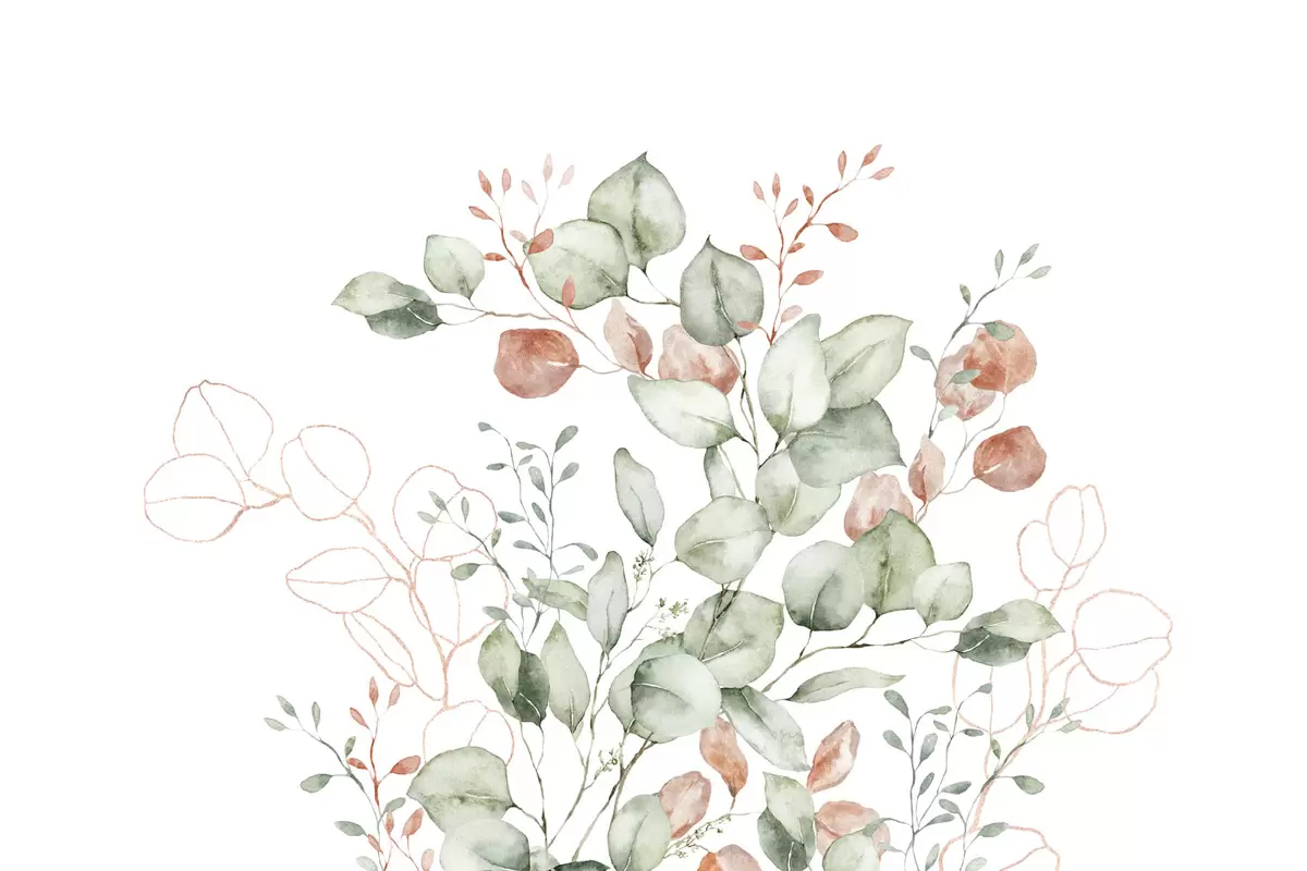 Zidne murale Imitacija vegetacije i grana teksturiranim akvarelom, nijanse zelene i crvene br. w03927v1