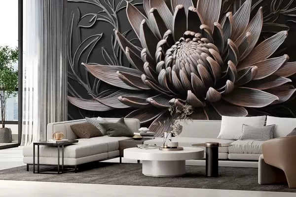 Zidne murale Cvijet protee, bež i crne boje br. w03930