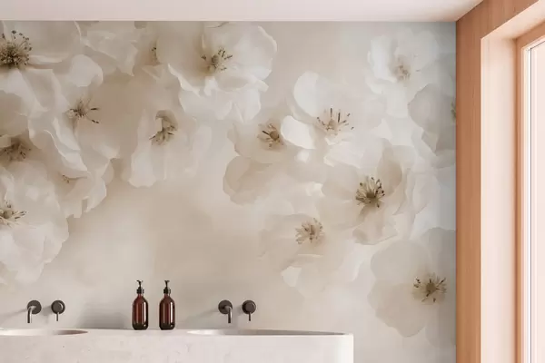 Zidne murale Nježni veliki cvjetovi, nijanse bež boje br. w03931v2