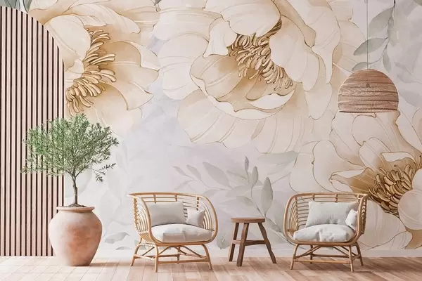 Zidne murale Akvarel imitacije žutih božura br. w03932v1