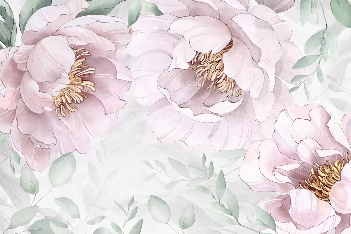 Zidne murale Ružičasti božuri imitacija akvarela br. w03932v2