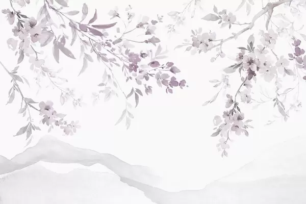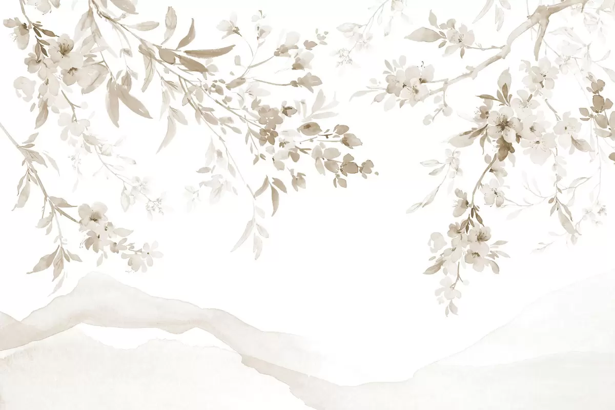 Zidne murale Cvjetne grane, imitacija akvarela, bež nijanse br. w03935v2