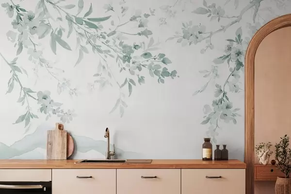 Zidne murale Cvjetajuće grane, imitacija akvarela, zelene nijanse br. w03935v3