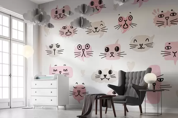 Zidne murale Mačja lica u nijansama ružičaste br. w03951v1