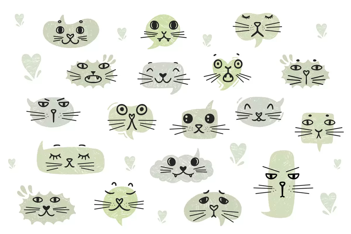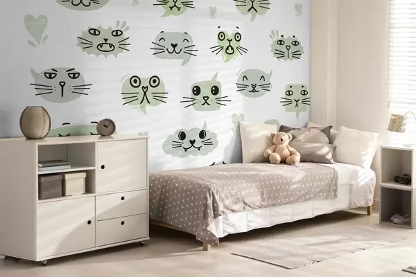 Zidne murale Mačja lica u nijansama zelene br. w03951v3