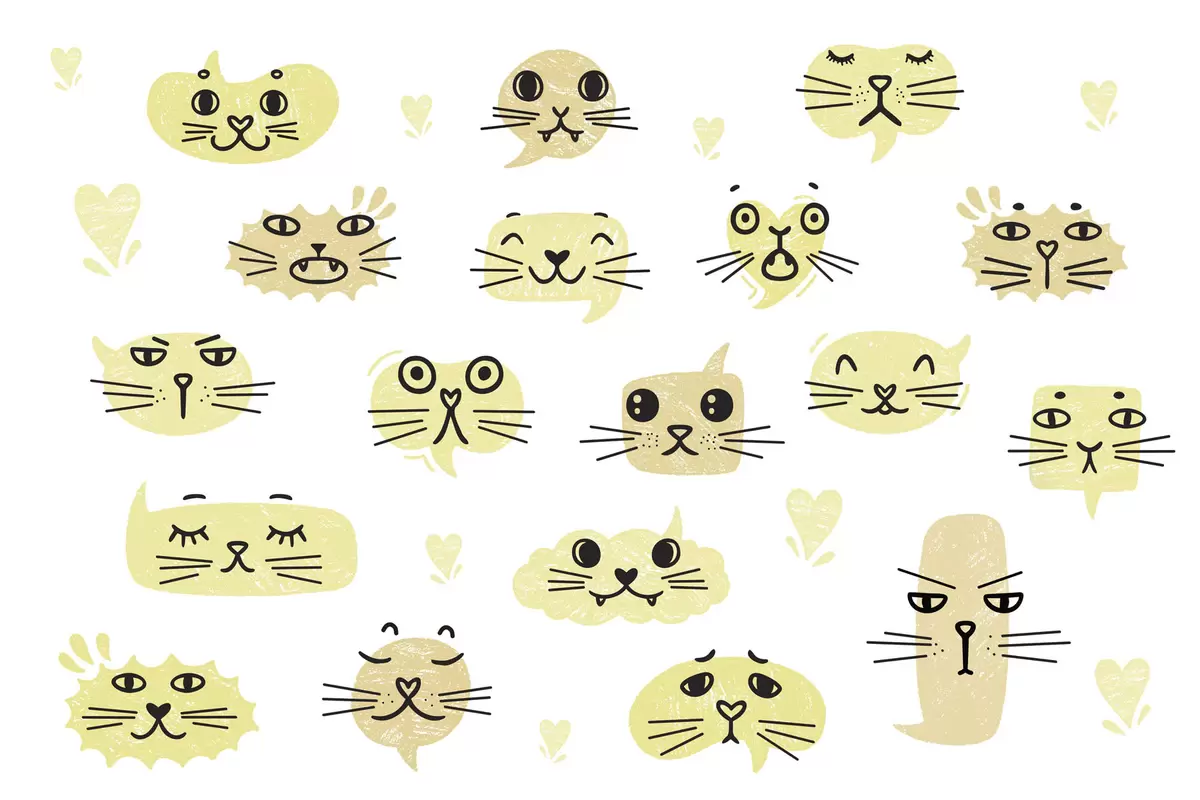 Zidne murale Mačja lica u nijansama žute br. w03951v4