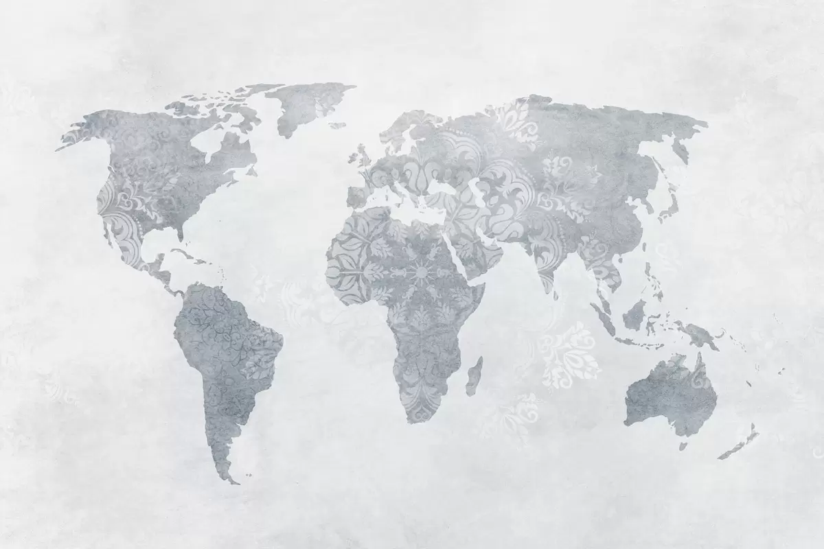 Zidne murale Karta svijeta s uzorkom, plave nijanse br. w03954v2