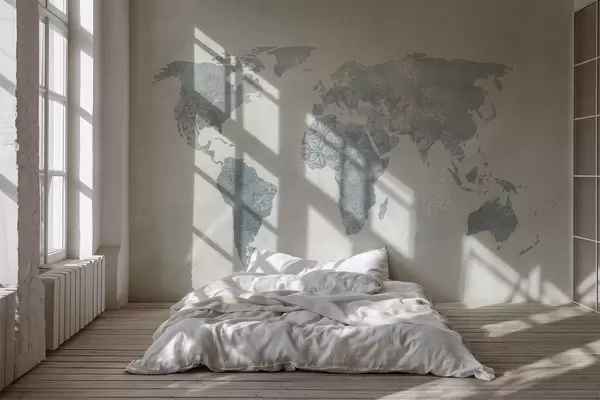 Zidne murale Karta svijeta s uzorkom, plave nijanse br. w03954v2