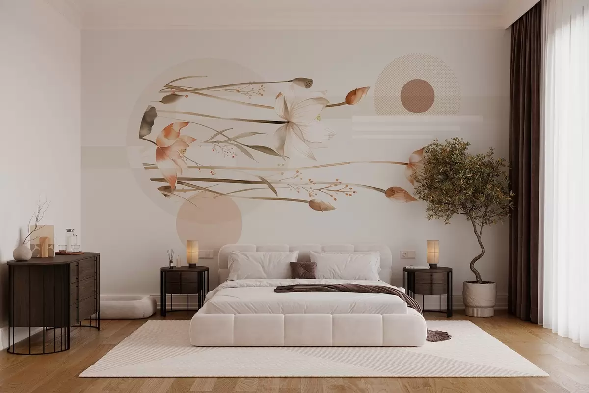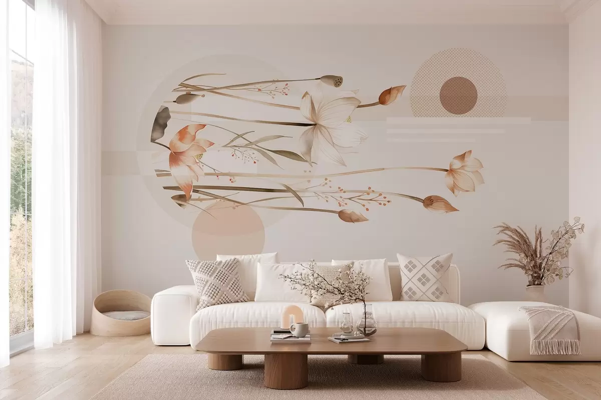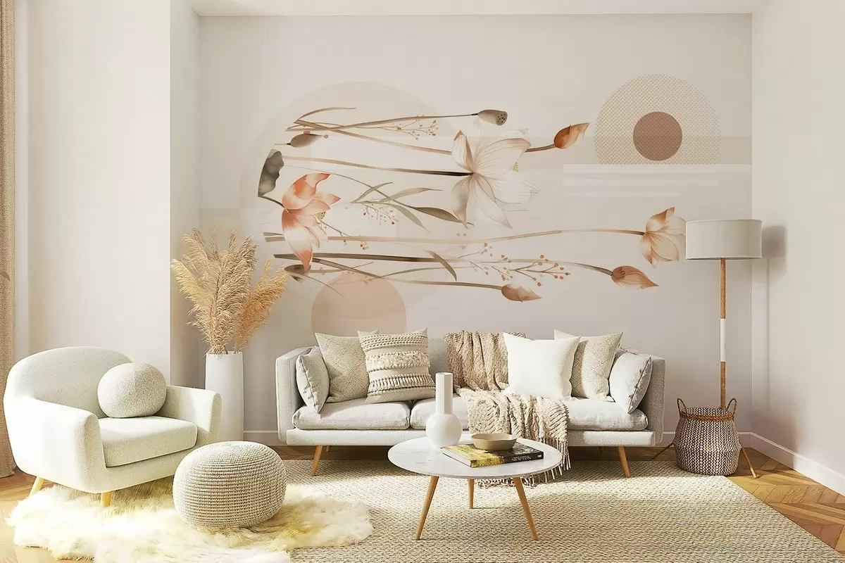 Zidne murale pastelni ljiljani i boho geometrija br. w03964
