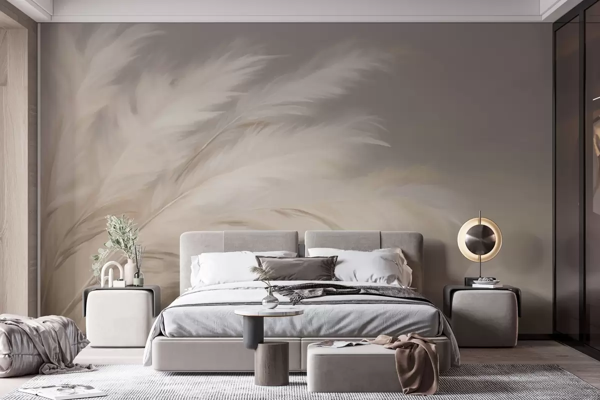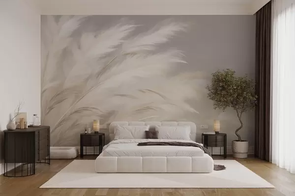 Zidne murale Mekane pahuljaste trave u bež i sivoj boji br. w03992