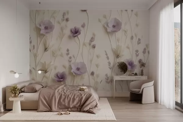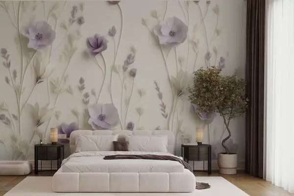 Zidne murale Nježni cvjetovi jorgovana na kremastoj pozadini br. w03993