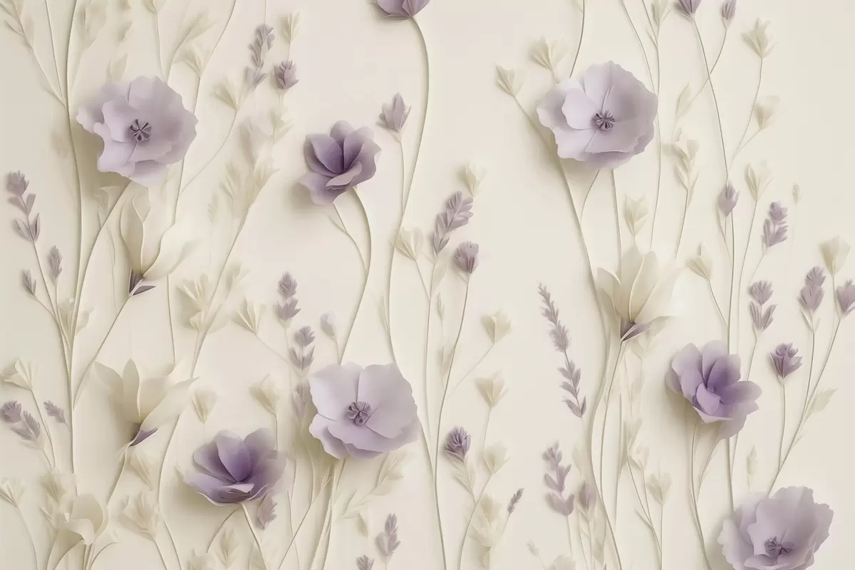 Zidne murale Nježni cvjetovi jorgovana na kremastoj pozadini br. w03993