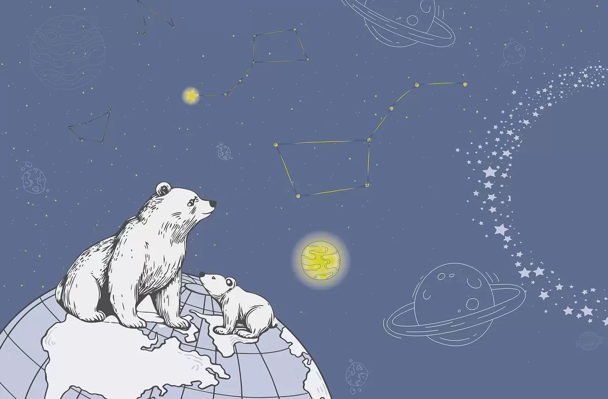 Zidne murale Medvjedi i zvijezde na plavoj pozadini, noćna astronomija br. w04002v1