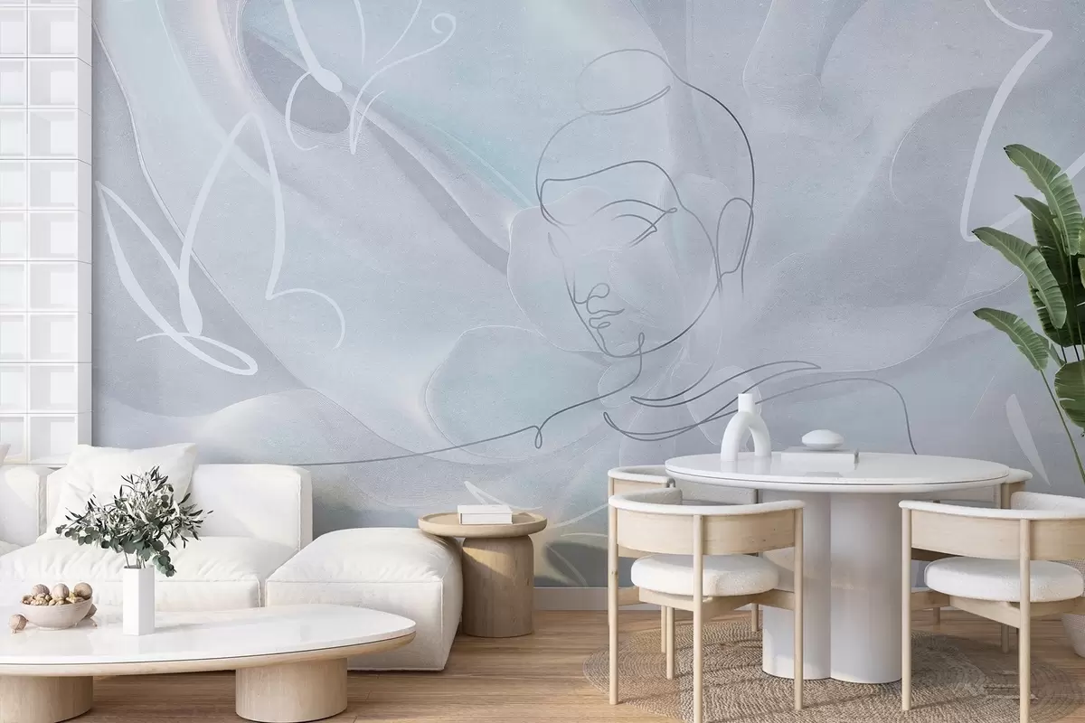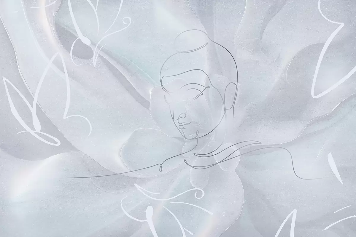 Zidne murale Cvjetna apstrakcija s crtežom Bude, plave boje br. w04004v1