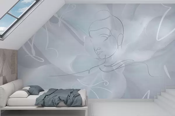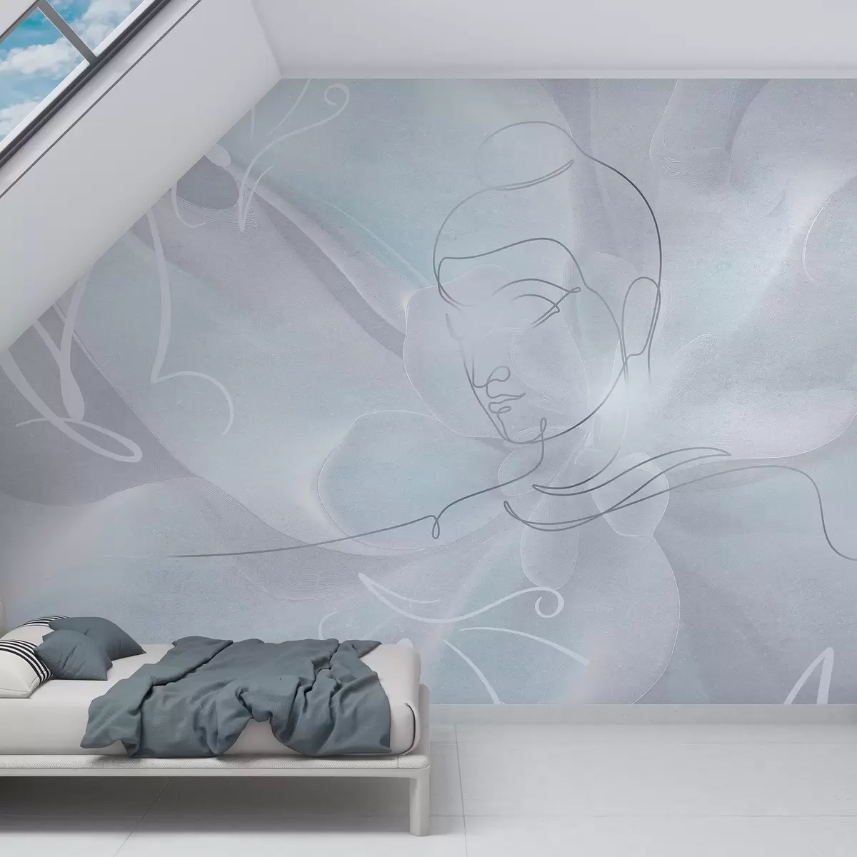 Zidne murale Cvjetna apstrakcija s crtežom Bude, plave boje br. w04004v1