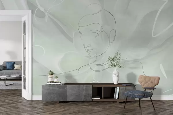 Zidne murale Cvjetna apstrakcija s crtežom Bude, zelene boje br. w04004v3