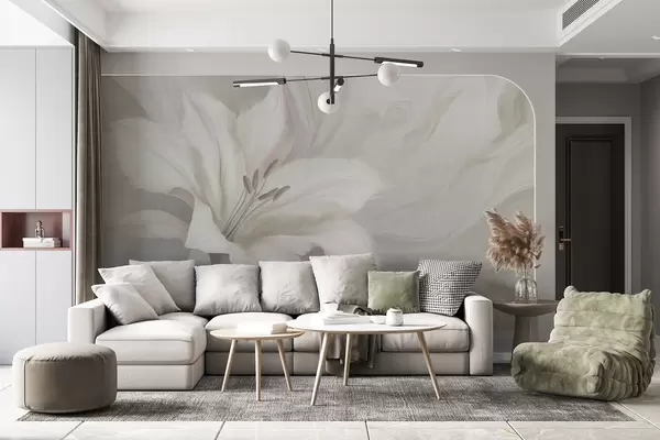 zidne murale Fluidna apstrakcija cvijeta ljiljana, cvjetne, sive boje w04006v2