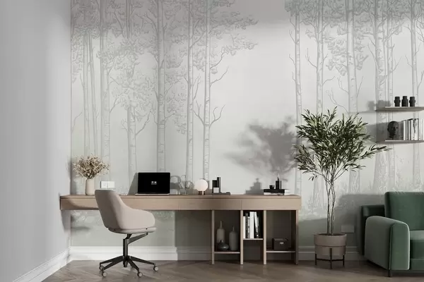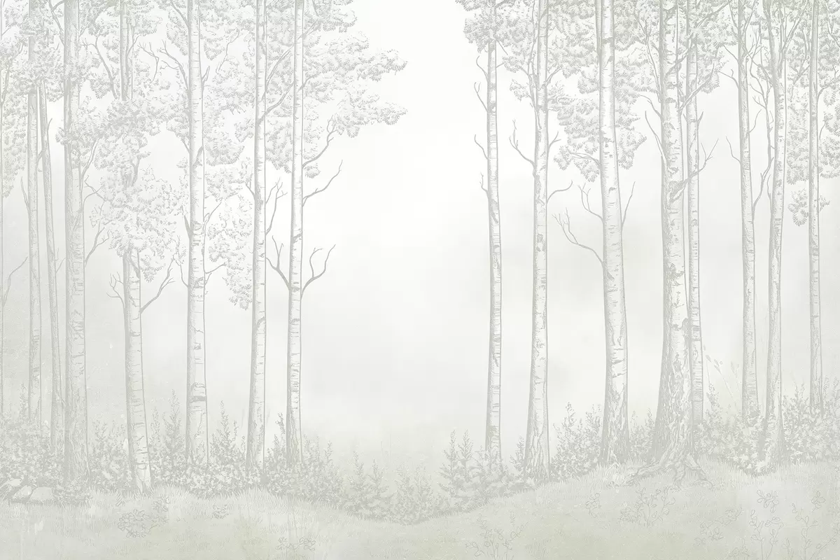 Zidne murale Šuma s brezama, minimalizam, priroda, zelena paleta boja br. w04009v1