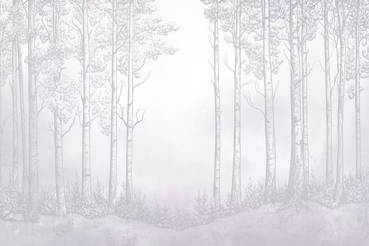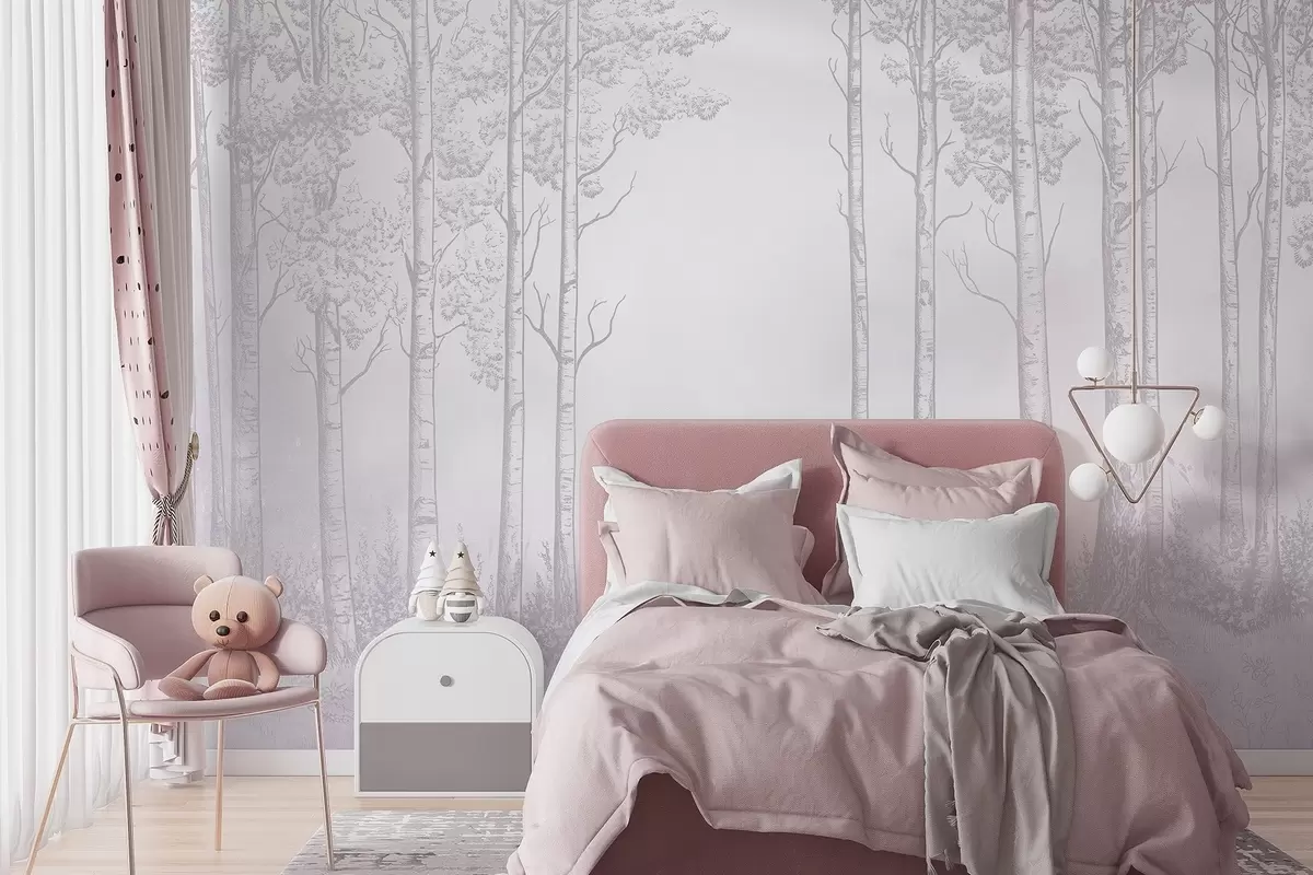 Zidne murale Šuma s brezama, minimalizam, priroda, ružičasta paleta boja br. w04009v2