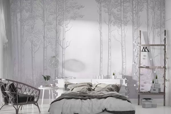 Zidne murale Šuma s brezama, minimalizam, priroda, ružičasta paleta boja br. w04009v2