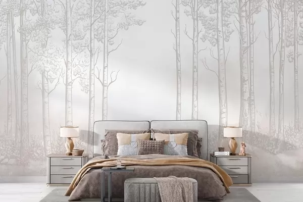 Zidne murale Šuma s brezama, minimalizam, priroda, bež paleta boja br. w04009v3