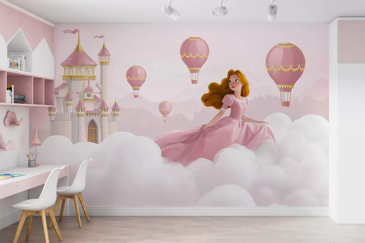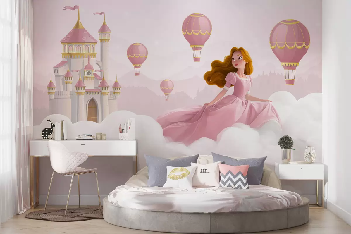 Zidne murale Princeza među oblacima na pozadini krajolika s dvorcem br. w04015v1